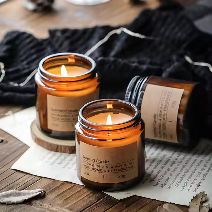 Brown glass scented candle with tinplate lid